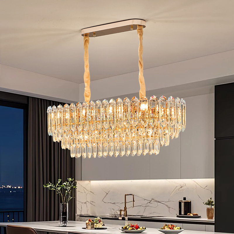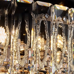 ART - 593L sử dụng chất liệu hợp kim cho khung đèn — chắc chắn, chống ăn mòn, bền đẹp theo thời gian. Phần pha lê cao cấp được mài cắt tỉ mỉ, có khả năng khúc xạ ánh sáng nổi bật, mang lại hiệu ứng lấp lánh, lung linh, biến không gian thành một bữa tiệc ánh sáng đẳng cấp.