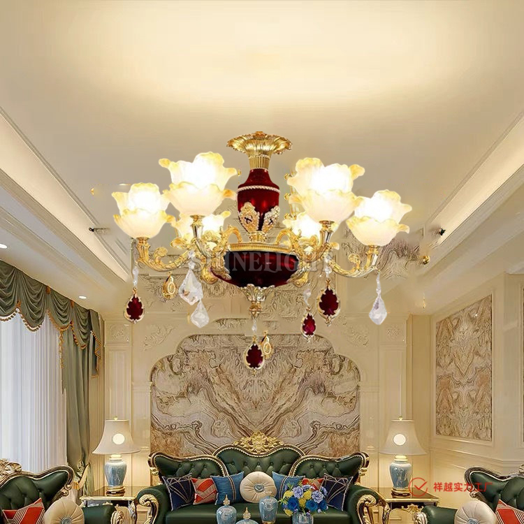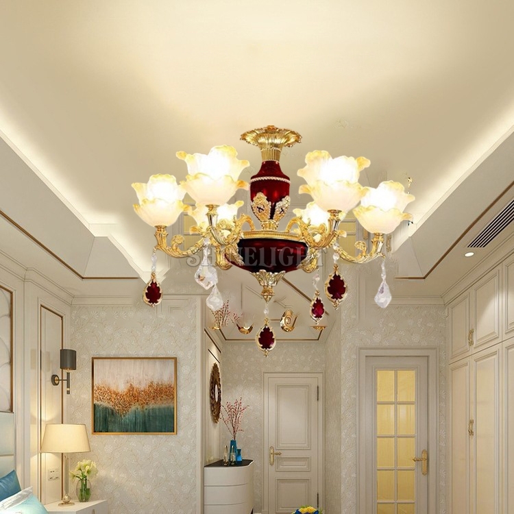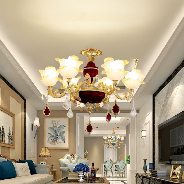 Điểm nổi bật của sản phẩm nằm ở màu ngọc đỏ rực rỡ. Không chỉ đẹp ở tính thẩm mỹ, sắc đỏ này còn giúp không gian trở nên ấm áp, lôi cuốn và đầy sức sống. Dưới ánh sáng, các hạt pha lê đỏ phản chiếu tạo nên những tia sáng lung linh, khiến cả căn phòng bừng sáng như một bữa tiệc ánh sáng.