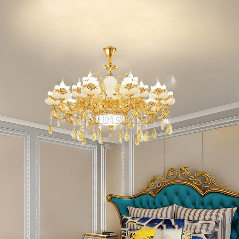 Sắc vàng kim của đèn không chỉ mang đến cảm giác xa hoa, quý phái mà còn phản chiếu ánh sáng một cách tinh tế, tạo hiệu ứng lung linh và ấm áp. Lớp mạ vàng được xử lý tỉ mỉ giúp sản phẩm duy trì độ sáng bóng và chống oxy hóa, giữ nguyên vẻ đẹp sau nhiều năm sử dụng.