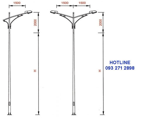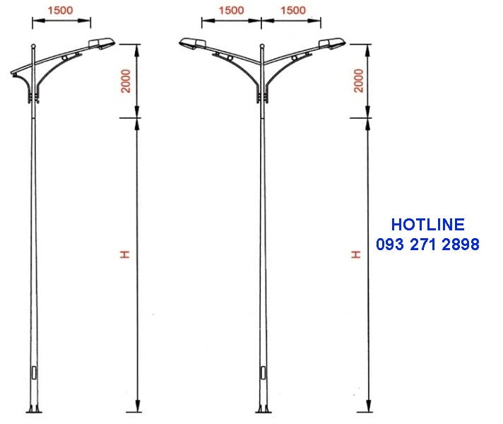 Chiều cao: Từ 8 – 16m tính cả đế và thân. Chiều cao cần đèn linh hoạt 1,12m – 1,25m.