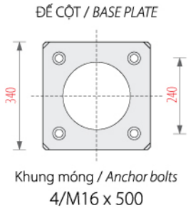 - Đế cột: Nhựa kỹ thuật, kháng UV, sơn đen mờ