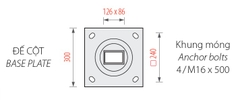 Lắp đặt: Cột được liên kết với bê tông móng bằng 04 bu lông M16
