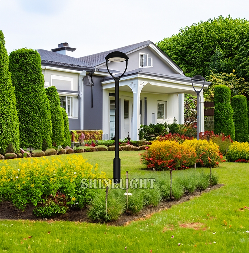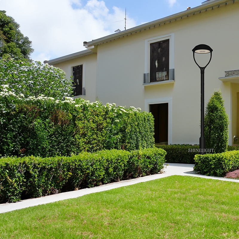 Cột đèn sân vườn hiện đại SLDSVHL55 được sử dụng từ vật liệu nhôm đúc nguyên khối áp lực cao và PC đúc nguyên khối cao cấp.