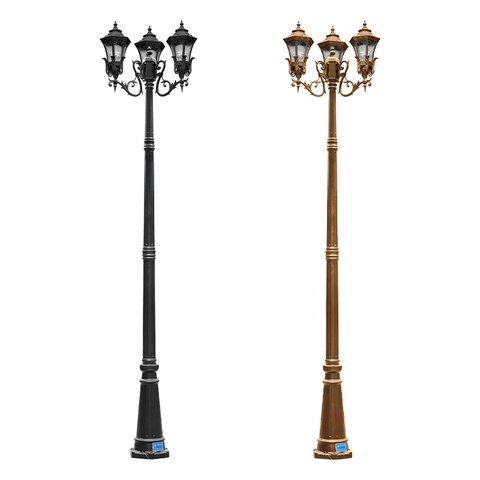 Hợp kim nhôm đúc: Vật liệu này nổi tiếng với trọng lượng nhẹ nhưng cực kỳ bền chắc, có khả năng chống ăn mòn, oxy hóa vượt trội. Điều này giúp cột đèn giữ được vẻ đẹp nguyên bản qua nhiều năm sử dụng, ngay cả khi tiếp xúc trực tiếp với mưa, nắng, gió biển hay sương muối.