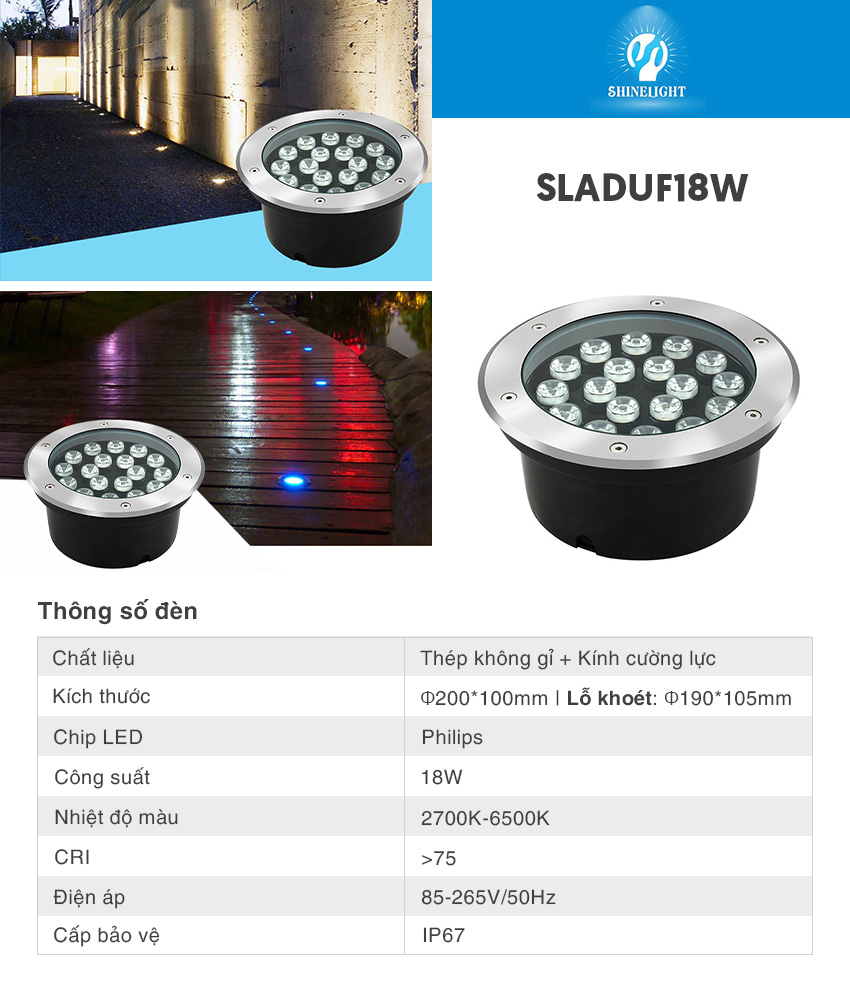 Đèn âm đất nói chung hay Đèn Âm Đất 18W nói riêng là loại đèn LED âm sàn, có thiết kế thân hình khối trụ vuông hoặc khối trụ tròn dùng để chôn dưới mặt đất.