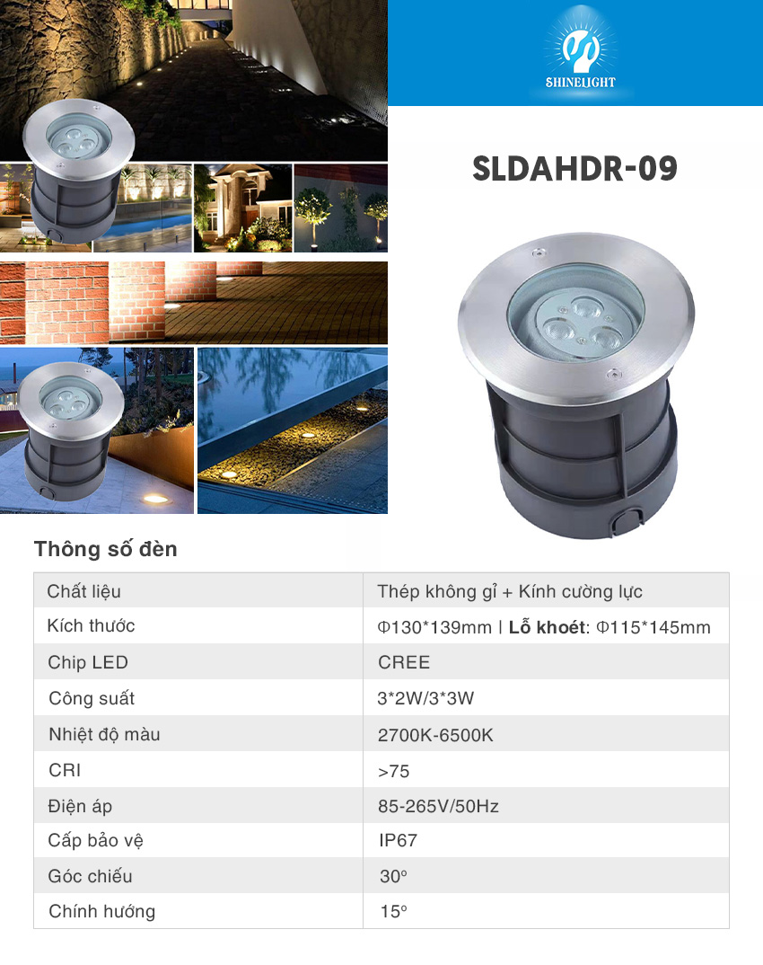 - SHINELIGHT tin tưởng sử dụng chip LED chất lượng cao cho sản phẩm đèn LED âm đất SLDAHDR09.