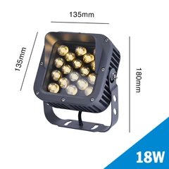 Mẫu đèn rọi sân vườn sử dụng chip COB vơi hiệu suất cao, tuổi thọ bền, thấu kính giúp khuếch tán ánh sáng đồng đều và rõ ràng. Tạo thành ống kính có góc chiếu khá nhỏ chỉ khoảng 30 độ, có thể nhìn thấy đường đi của tia sáng.