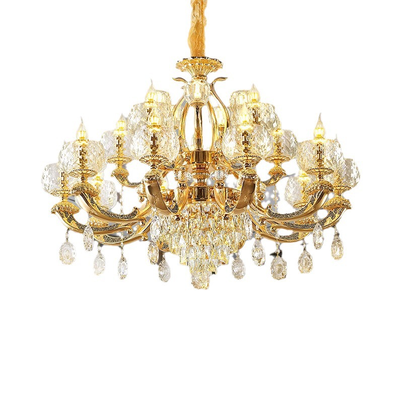 CHÙM MẠ VÀNG 192/15 là lựa chọn lý tưởng trong phân khúc cao cấp, nổi bật với khung hợp kim chắc chắn, phủ lớp mạ vàng sang trọng, kết hợp pha lê trong suốt phản chiếu ánh sáng rực rỡ. Sự hòa quyện giữa chất liệu và thiết kế giúp sản phẩm vừa cung cấp ánh sáng hoàn hảo, vừa tô điểm cho không gian thêm ấn tượng.