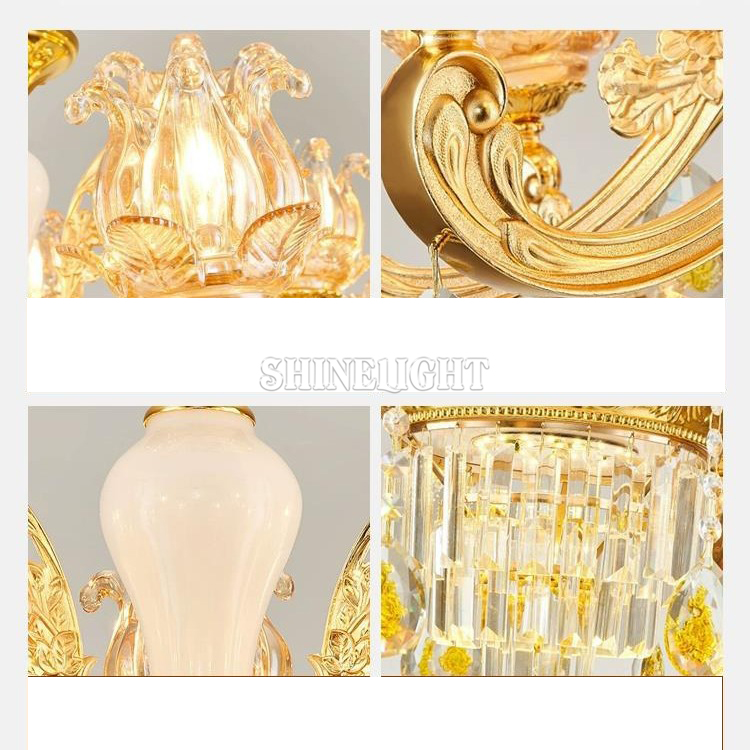 - Pha lê cao cấp: Mỗi hạt pha lê được cắt mài chuẩn xác, khi ánh sáng đi qua tạo hiệu ứng lấp lánh như hàng ngàn giọt sương mai, làm bừng sáng không gian.