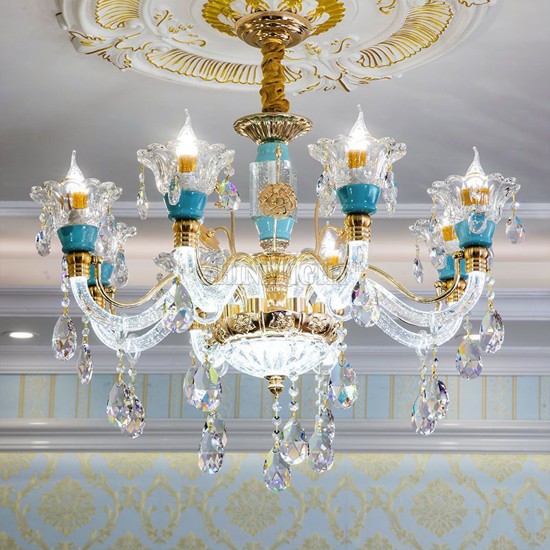 - CHÙM PHÁT QUANG 619 được thiết kế với nhiều tay đèn tỏa đều, tạo bố cục cân đối, hài hòa và bắt mắt. Mỗi tay đèn là sự kết hợp tinh tế giữa đường cong mềm mại của hợp kim và sự lấp lánh của chao pha lê, mang đến cảm giác vừa hiện đại vừa cổ điển.