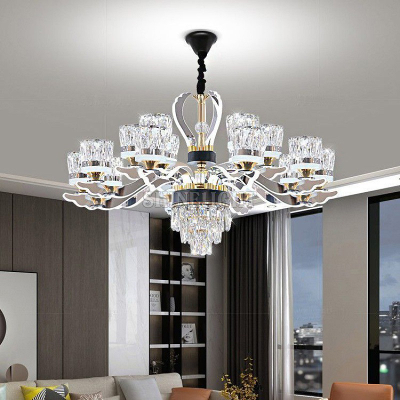 - Thẩm mỹ sang trọng: Pha lê khúc xạ ánh sáng lung linh, khung inox sáng bóng tạo ấn tượng mạnh