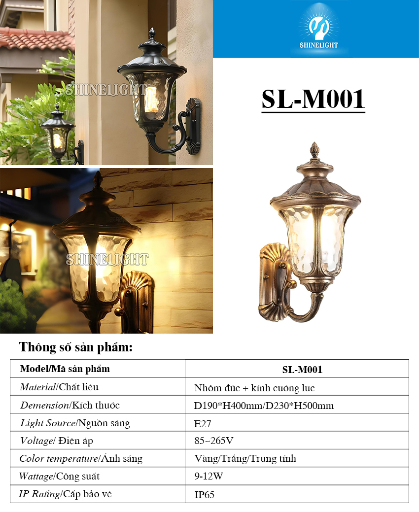 Đèn gắn tường cổ điển SL-M001 luôn là sự lựa chọn hoàn hảo để tô điểm thêm vẻ đẹp cổ điển cho không gian sống hiện đại. Với thiết kế tinh tế, các sản phẩm đèn gắn tường cổ điển mang đến vẻ đẹp trang nhã và quý phái cho ngôi nhà bạn.