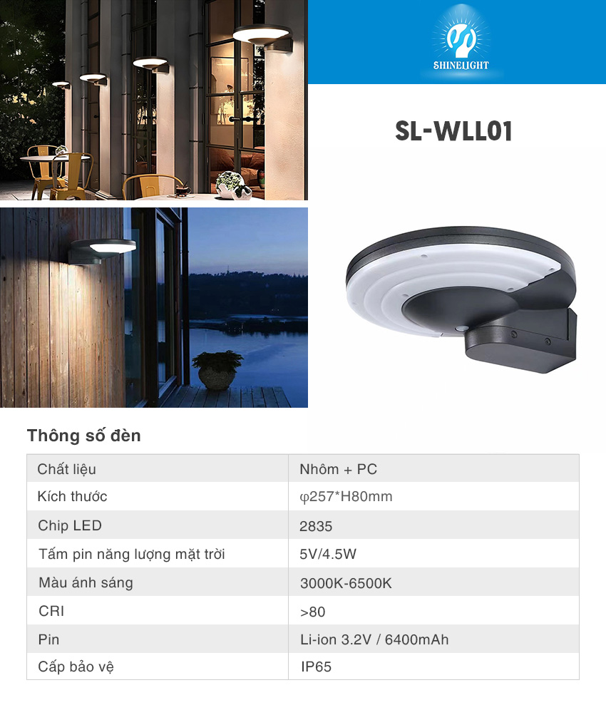 Mô tả sản phẩm Đèn gắn tường năng lượng mặt trời SL-WLL01