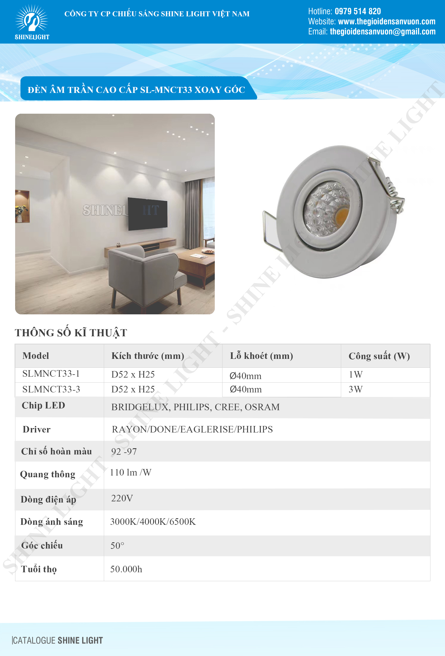 1. Thông số kỹ thuật đèn Spotlight SLMNCT33