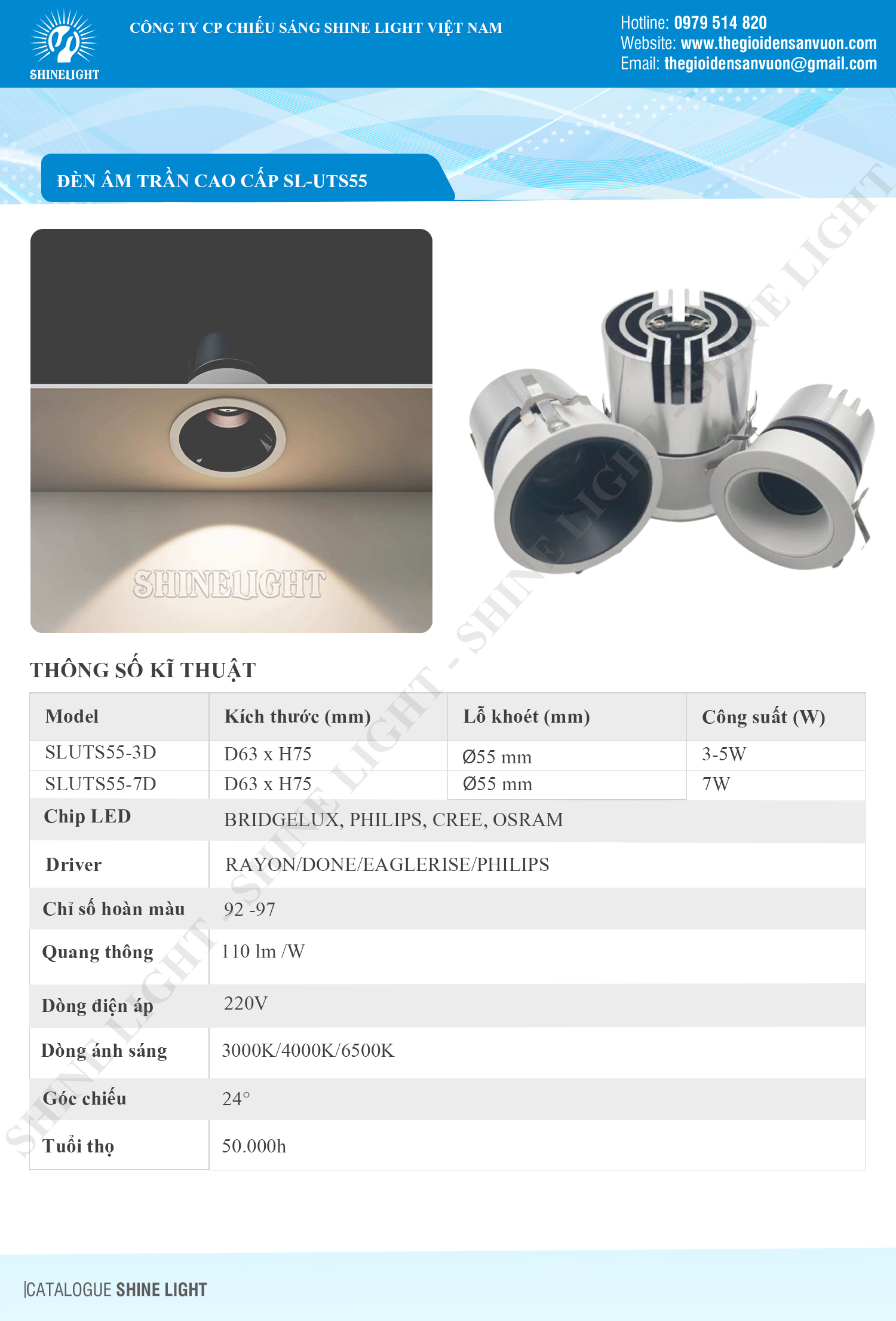 - Công suất: 3-5W (UTS55-3T) / 7W (UTS55-7T)