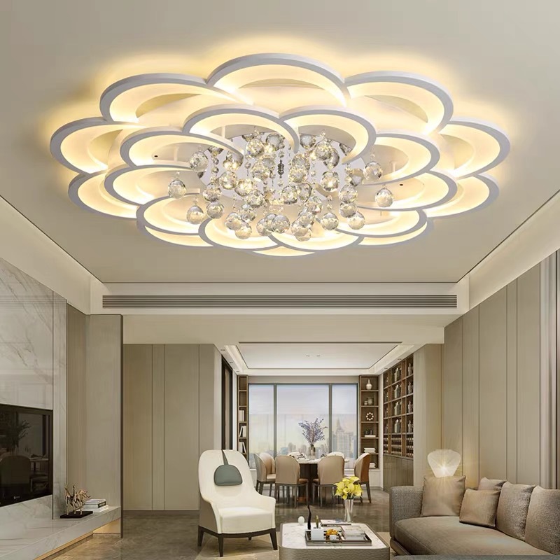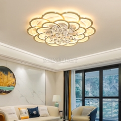 - Pha lê điểm xuyết ở tâm đèn góp phần tạo hiệu ứng lung linh, phản chiếu ánh sáng lấp lánh khi bật đèn.
