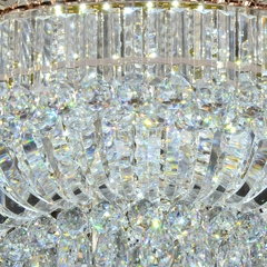 Phần chao và chi tiết trang trí của đèn sử dụng pha lê cao cấp – vật liệu nổi tiếng với khả năng khúc xạ ánh sáng tuyệt vời. Khi ánh sáng được bật lên, pha lê tỏa ra những tia sáng lấp lánh, tạo hiệu ứng lung linh huyền ảo như một vũ điệu ánh sáng. Điều này không chỉ giúp chiếu sáng tốt hơn mà còn biến chiếc đèn trở thành một tác phẩm nghệ thuật đích thực, thu hút mọi ánh nhìn.