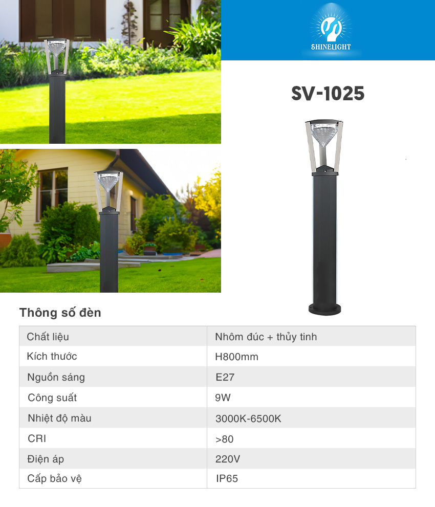 Đèn nấm sân vườn SV-1025 trang trí sân vườn là dòng sản phẩm chuyên dùng sử dụng cho việc chiếu sáng lối đi sân vườn, trang trí cho các vườn cây, khu tiểu cảnh giúp tạo lỗi dẫn đường cũng như giúp đem đến không gian kiến trúc tổng thể cho ngôi nhà. Đèn nấm sân vườn SV-1025 được thiết kế đơn giản, tinh tế và sang trọng mang đậm phong cách hiện đại, với những tính năng ưu việt, dễ dàng lắp đặt sử dụng, tiết kiệm điện, tuổi thọ lâu dài, và thân thiện với môi trường.