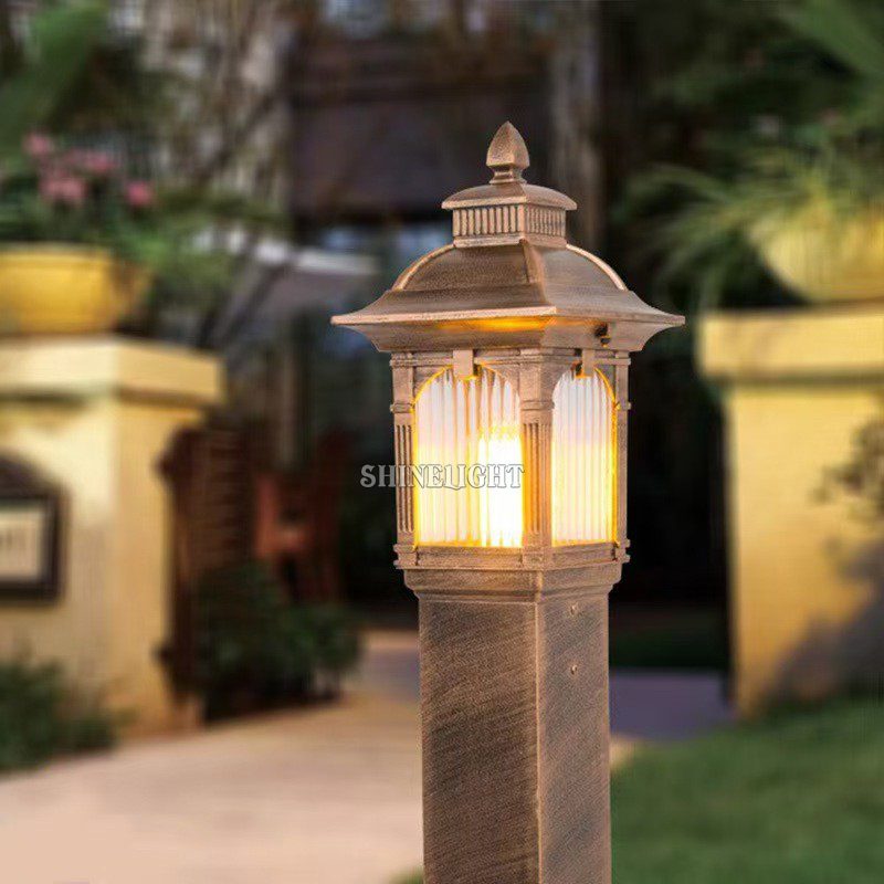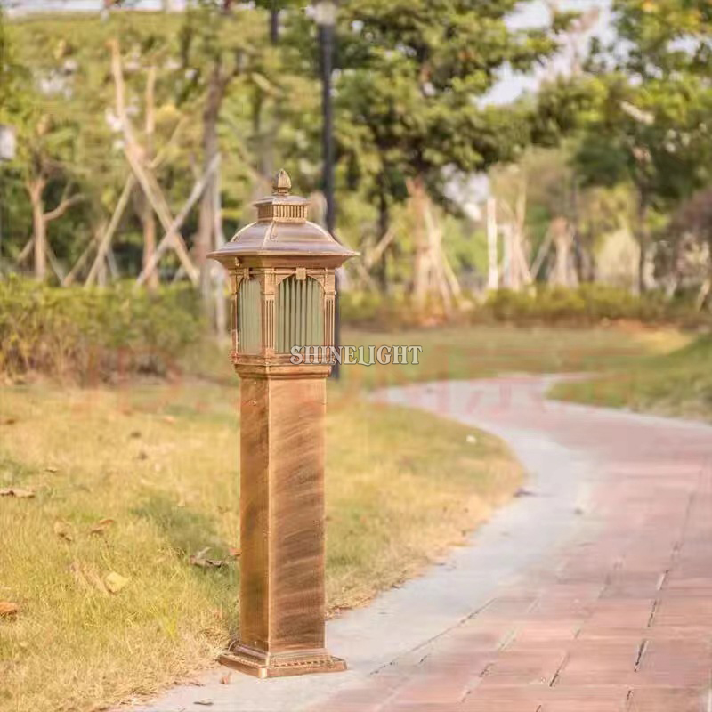 Ánh sáng vàng tỏa ra từ thân đèn bằng nhôm đúc, phản chiếu xuống mặt đất, khiến lối đi trở nên sang trọng, đẳng cấp và đầy cảm xúc.