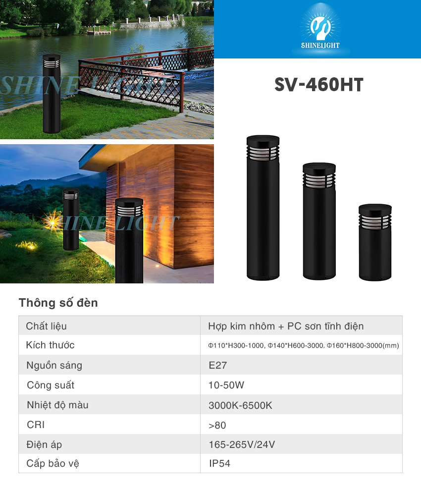 - Đèn nấm sân vườn hiện đại SV-460HT có góc chiếu sáng rộng 360 độ nên ánh sáng của đèn led được tận dụng tối đa.