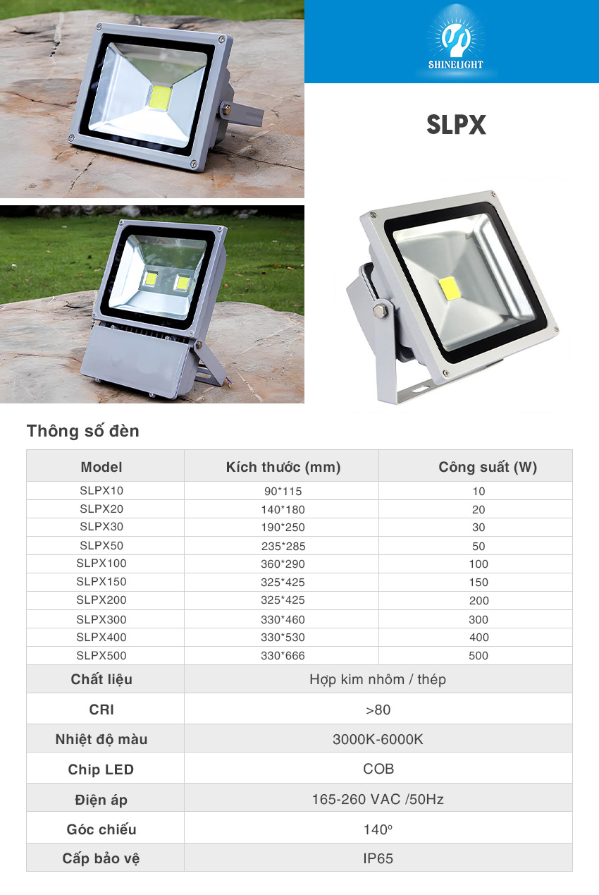 - Đèn Pha Led SLPX thay thế đèn truyền thống trong chiếu sáng mặt tiền, chiếu sáng cây xanh, chiếu sáng bảng hiệu quảng cáo, sân vườn, sân bóng mini….
