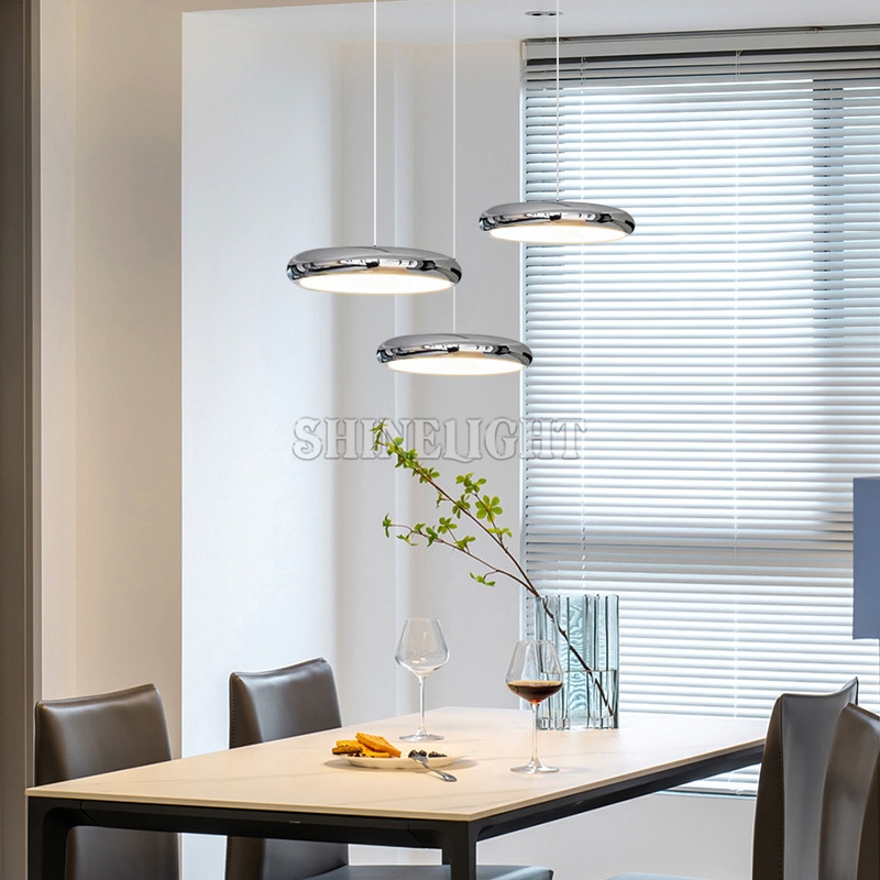 Kiểu dáng này đặc biệt phù hợp khi treo trên bàn ăn, đảo bếp, bàn làm việc hoặc quầy bar nhỏ, giúp tạo điểm nhấn thẩm mỹ mà không gây rối mắt.