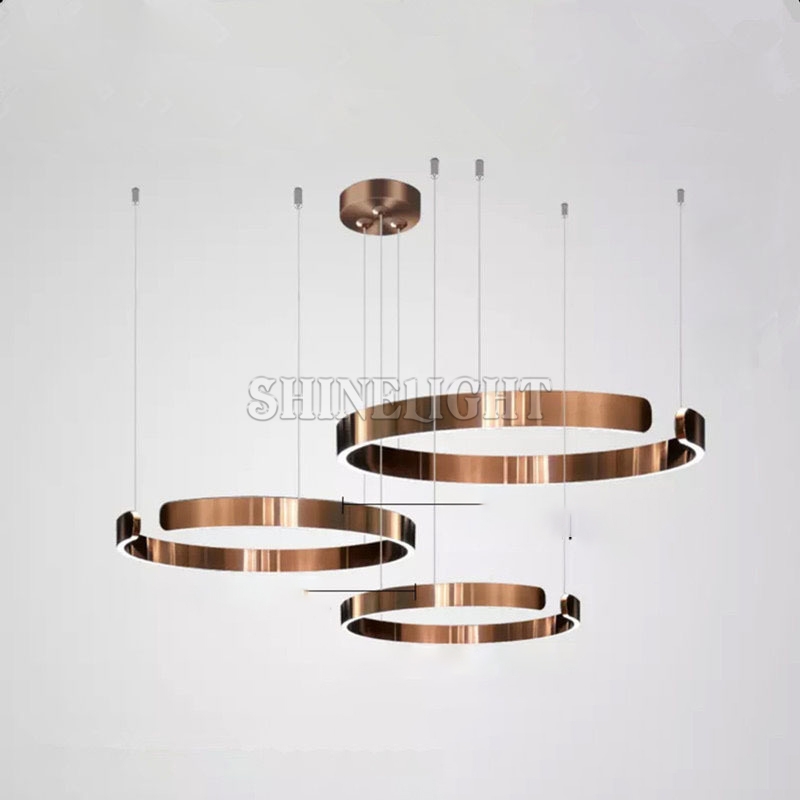 ART392-3CH gây ấn tượng với cấu trúc ba vòng tròn đồng tâm có đường kính từ D400 đến D800mm, xếp tầng theo chiều dọc. Thiết kế này không chỉ giúp ánh sáng lan tỏa đều mà còn tạo chiều sâu cho không gian – rất phù hợp với trần cao hoặc các khu vực cần tạo điểm nhấn.