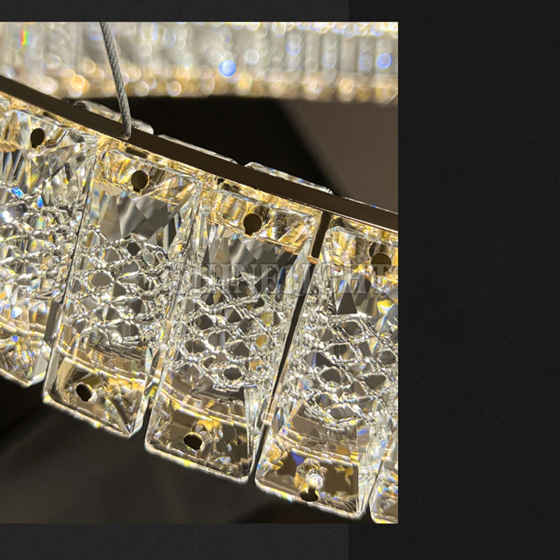 Thân đèn làm từ inox chống oxi hóa, dễ lau chùi, giữ được độ bóng theo thời gian. Phale cao cấp được cắt mài tỉ mỉ, phản chiếu ánh sáng rực rỡ mà không gây chói mắt. Tất cả tạo nên một tổng thể bền chắc, tinh tế và phù hợp với các phong cách nội thất từ hiện đại đến bán cổ điển.