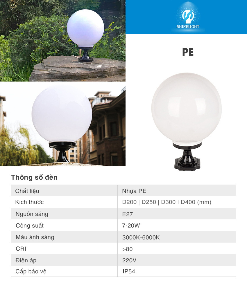 Đèn trụ cổng PE