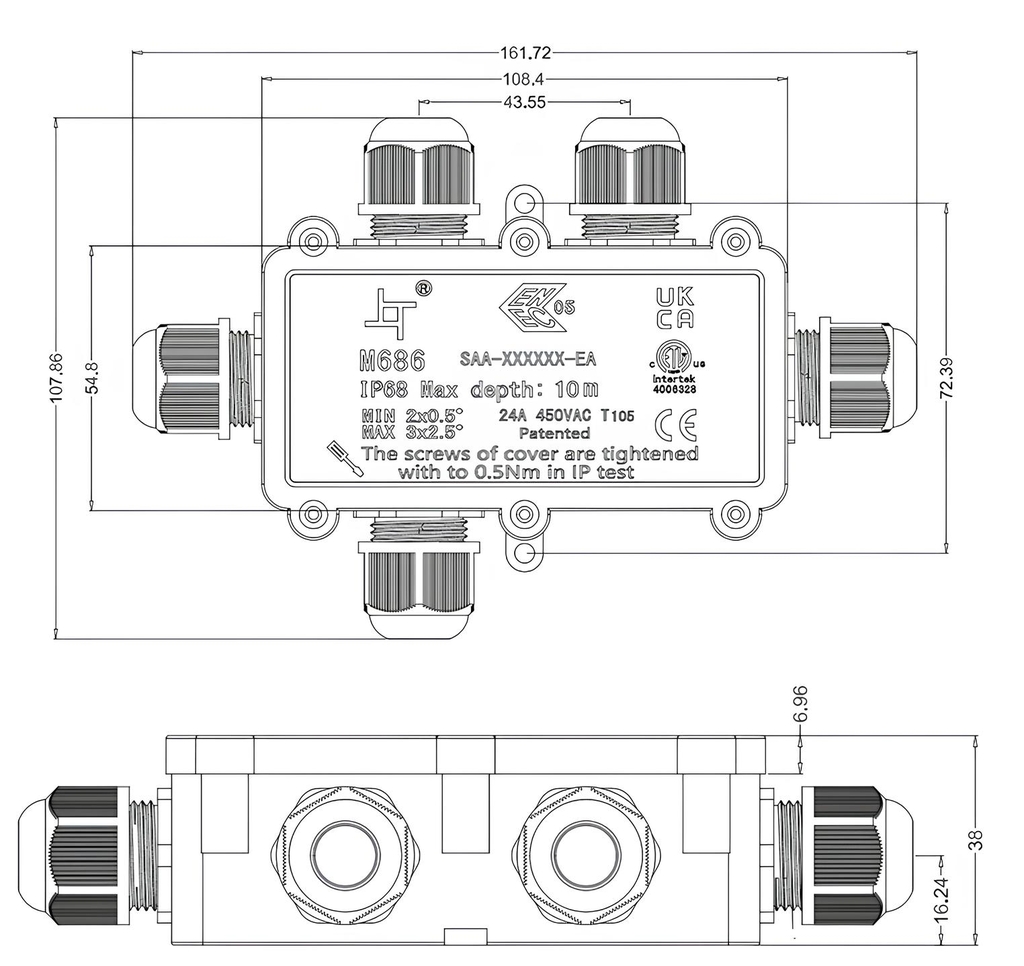 - Đường kính cáp có sẵn (Cao su): 4-8mm, 6-11mm